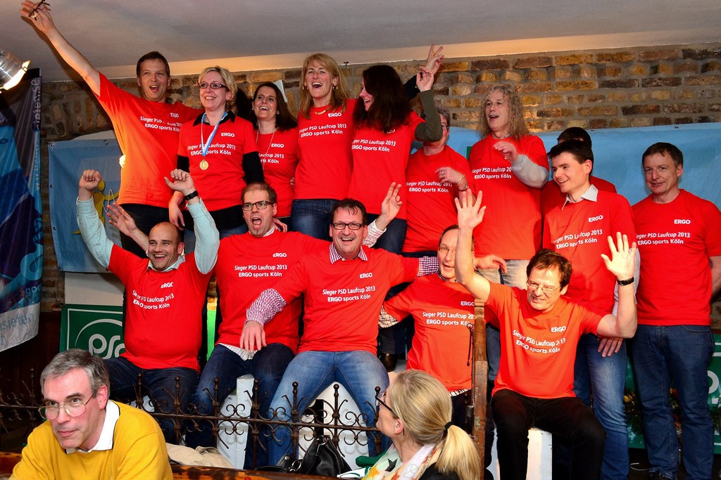 Sie haben es schon wieder geschafft. Zum dritten Mal in Serie konnte das vielköpfige Team der Betriebssportgruppe ERGO Sports die Mannschaftswertung des Time & Voice Lauf Cup Köln  gewinnen. Und dies erneut in fußballerischer und zudem kölscher Mannschaftsstärke. 11 Finisher mit mindestens fünf Zielankünften aus den Reihen um Leiter Thomas Boelter verzeichnet das Tableau, insgesamt kamen im gesamten Jahr 2015 sogar 18 Mitglieder 90 mal erfolgreich ins Ziel einer der in der Serie zusammengefassten Kölner Laufveranstaltungen. Auf den Plätzen zwei und drei folgen die Cologne Allblacks, die der Laufserie mittlerweile auch schon fünf Jahre die Treue halten, sowie Denis Rösler mit seiner Mannschaft von 25 Minutes Köln. Herzlichen Glückwunsch den erfolgreichen Teams.